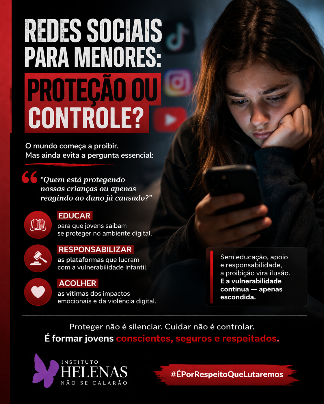 Nesse contexto, o Instituto Helenas Não Se Calarão reforça que a proteção de crianças e adolescentes no ambiente digital deve ser tratada como uma pauta estrutural, não apenas regulatória.